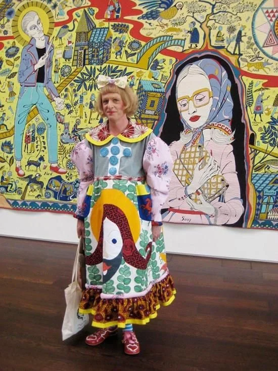 Grayson Perry is a contemporary British artist best known for his ceramic vessels, printed tapestries, and design for A House for Essex. His work contains a prominent autobiographical narrative which often features his alter ego, Claire. The narrative chronicles a troubled childhood. “I draw as a collagist, juxtaposing images and styles of mark-making from many sources,” he said of his practice. “The world I draw is the interior landscape of my personal obsessions and of cultures I have absorbed and adapted, from Latvian folk art to Japanese screens.” Born on March 24, 1960 in Chelmsford, United Kingdom, Perry graduated from Portsmouth Polytechnic with a BA in fine arts in 1982. Enrolling in an evening pottery course, it took the artist only a year before he was creating his signature vases. In 2003, Perry was the first ceramicist to win the Turner Prize. In 2016, his critically acclaimed book The Descent of Man was released to the public, the book calls attention to how rigid masculinity can destroy society. The artist currently lives and works with his wife Philippa Perry in London, United Kingdom. Perry’s works are held in the collections of The Museum of Modern Art in New York and the Tate Gallery in London.