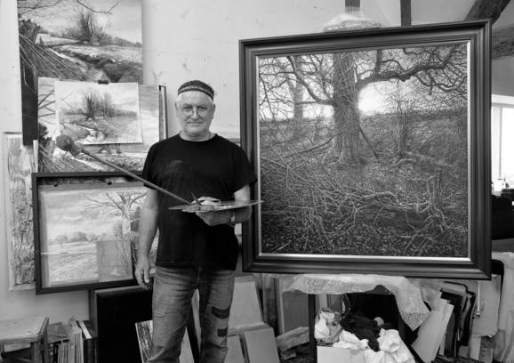 The current style he has been working on started out as a competition entry for Still Life. He decided to use the different materials by starting in pencil and then pen. Once happy with the result, he finished in oil pastels. On a recommendation he began to use acrylic on board and has been successfully painting in this style and technique ever since.